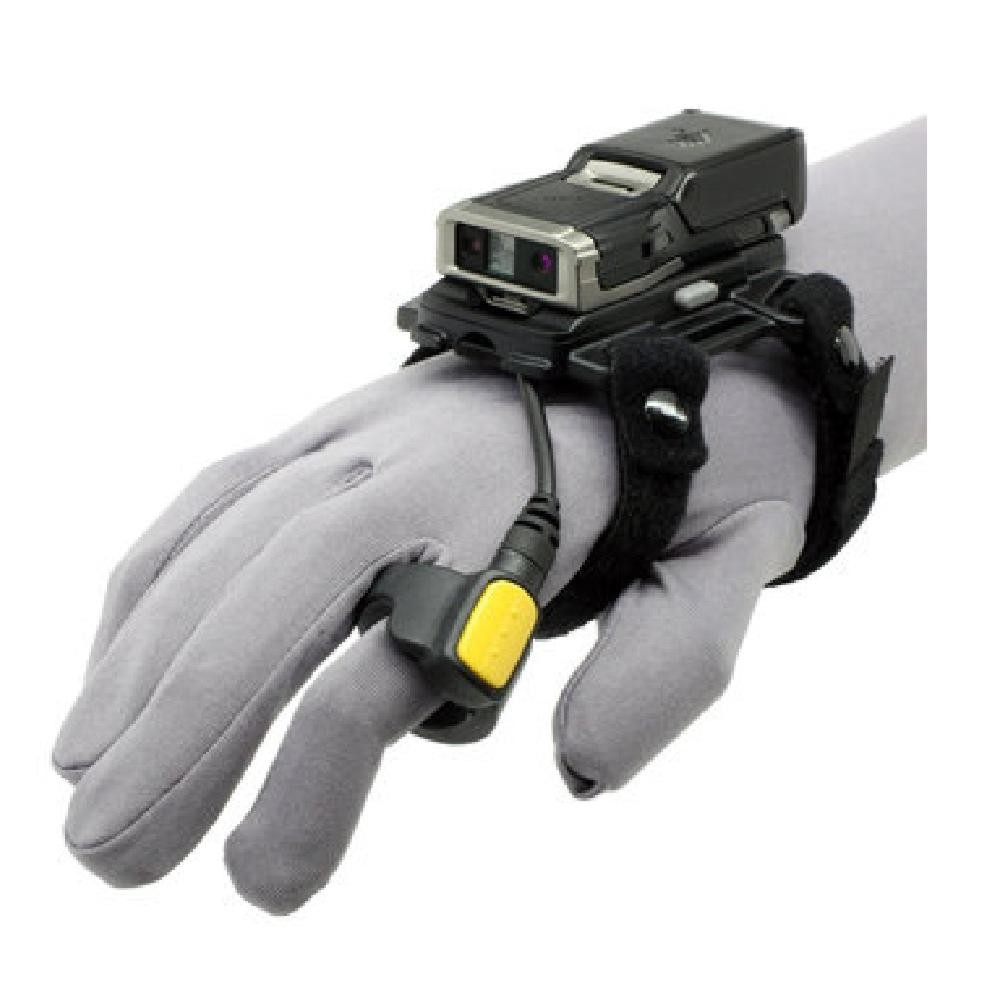 Terminal lecteur ZEBRA RS6100 ring se fixant sur la main inclus le support Ref : SG-RS5X6-HNMT-01 à commander une mitaine Ref : SG-WEAR-HNWPXX-01. Lecteur 1D/2D SE55. SANS boutons déclencheur. Avec Batterie 480 mAh. Bluetooth 5.2. Poids 70g. Le terminal fonctionne entre 0° à +50°C et résiste à 1000 chocs d'une hauteur de 50 cm. Certifié IEC 60529 : IP65.